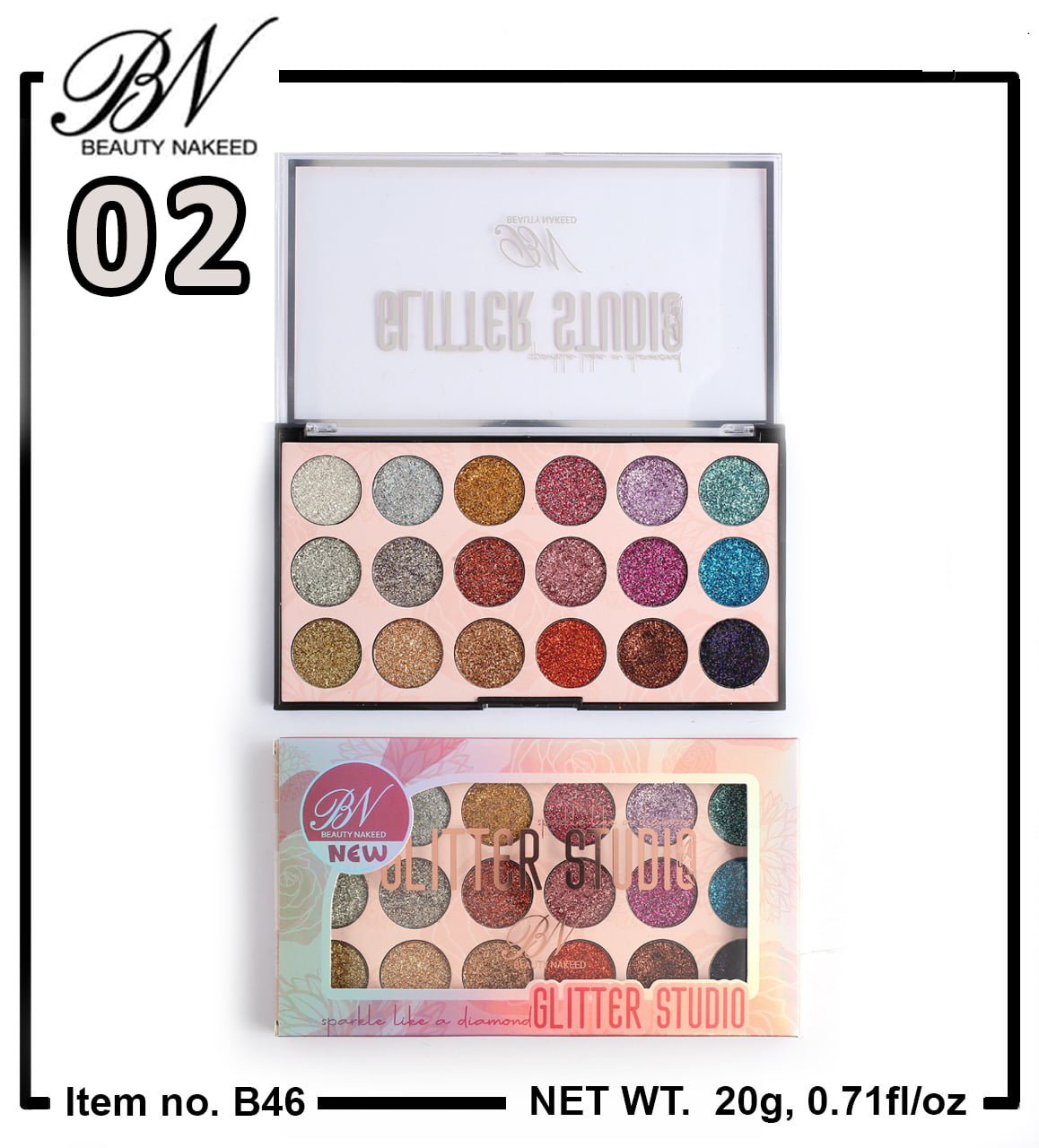 BN Beauty Nakeed 02 18 Colors Sequins Glitter Powder High Gloss Pearly Eye shadow Palette