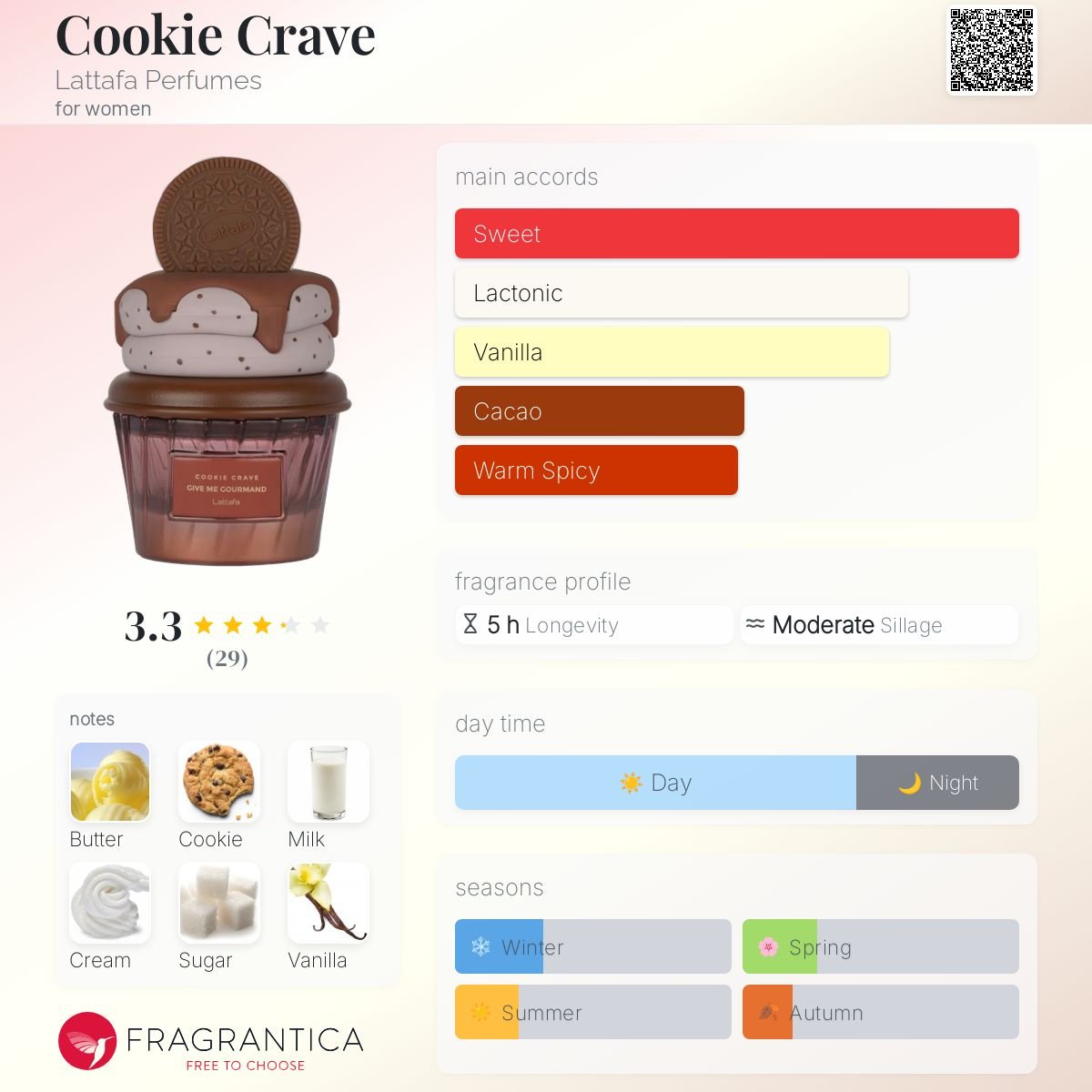 - Cookie Crave by Lattafa Perfumes is a Oriental Vanilla fragrance for women.
