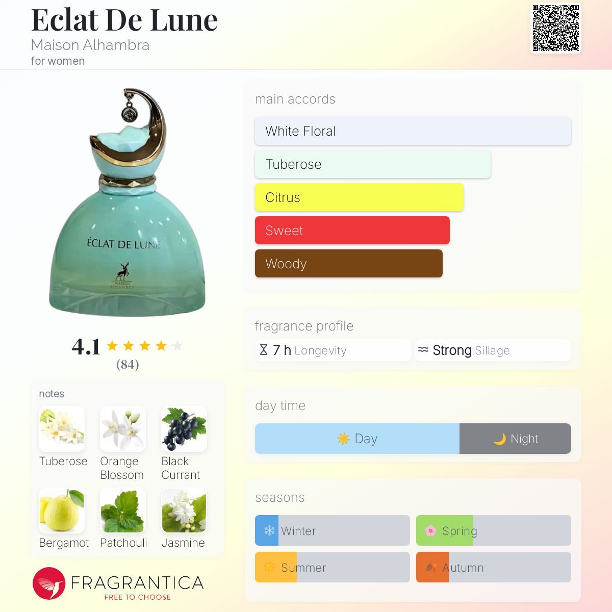 - Eclat De Lune by Maison Alhambra is a Floral Woody Musk fragrance for women.