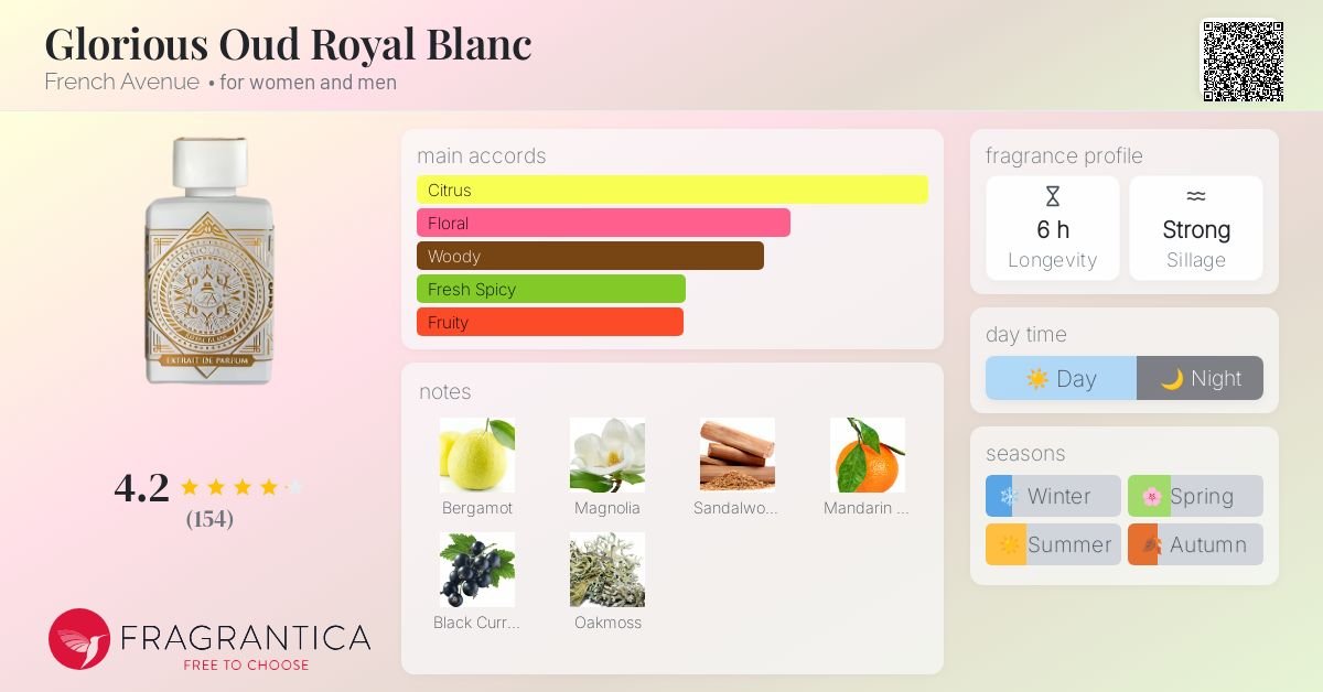 - Glorious Oud Royal Blanc by French Avenue is a Woody Chypre fragrance for women and men.