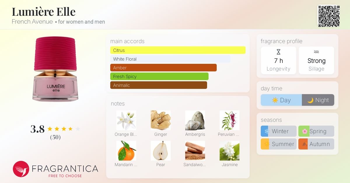 - Lumière Elle by French Avenue is a Floral fragrance for women and men.