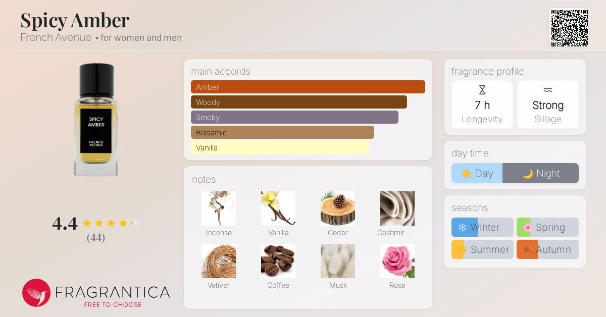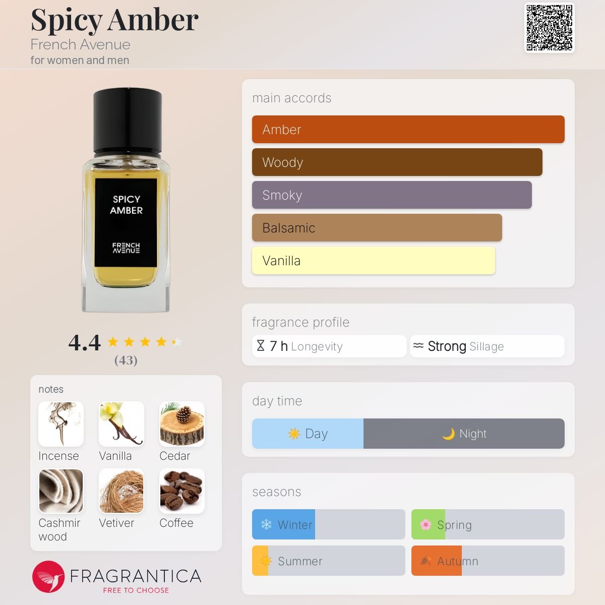 - Spicy Amber by French Avenue is a unisex fragrance that offers a luxurious experience with its blend of rich and evocative notes.