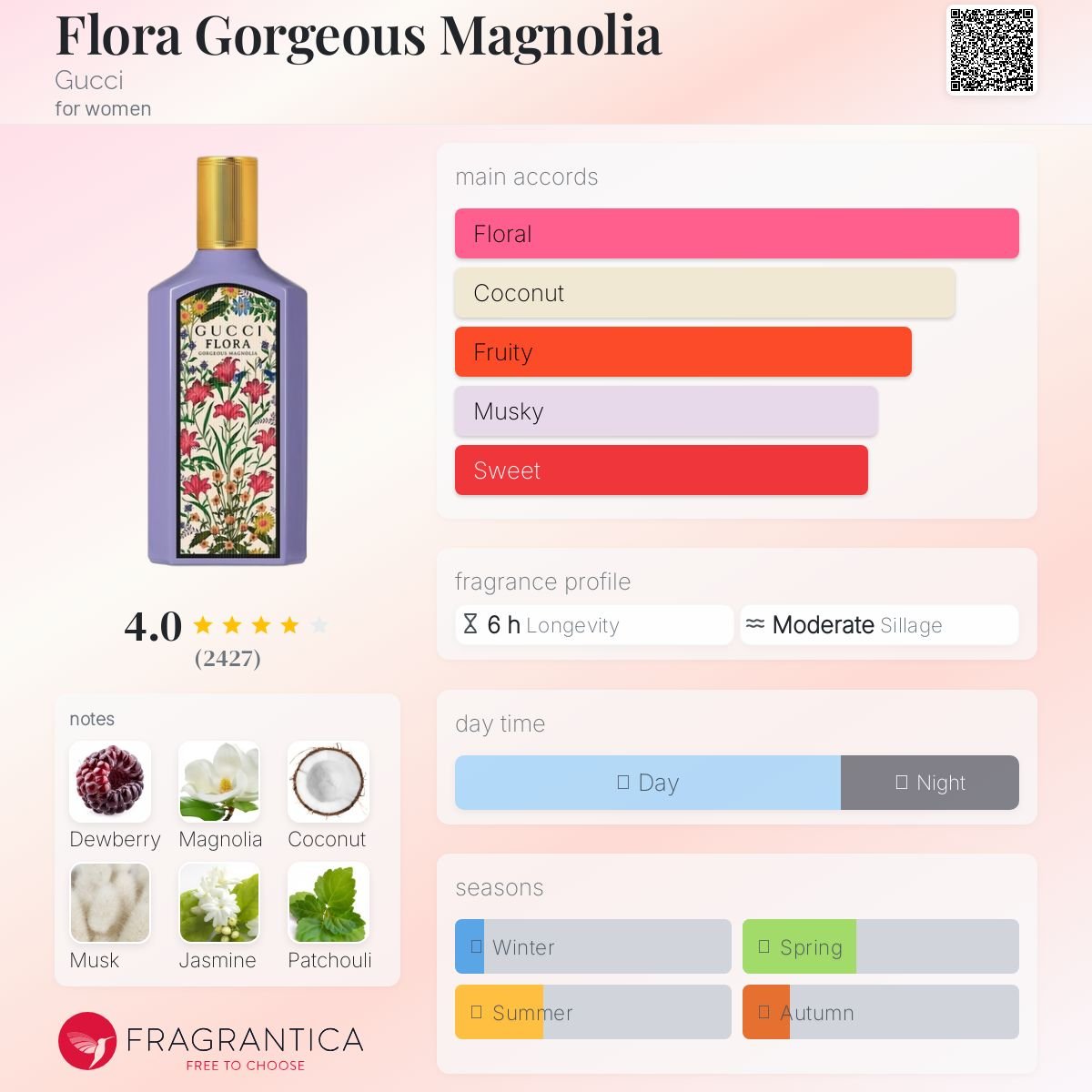 - Flora Gorgeous Magnolia by Gucci is a Chypre Floral fragrance for women.