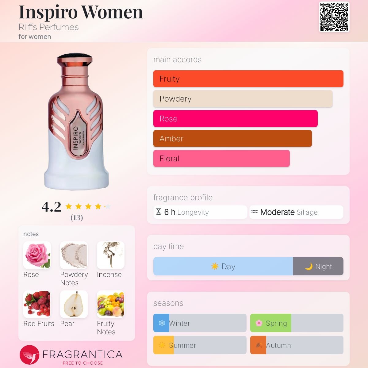 - Inspiro Women by Riiffs Perfumes is a Floral Fruity fragrance for women.