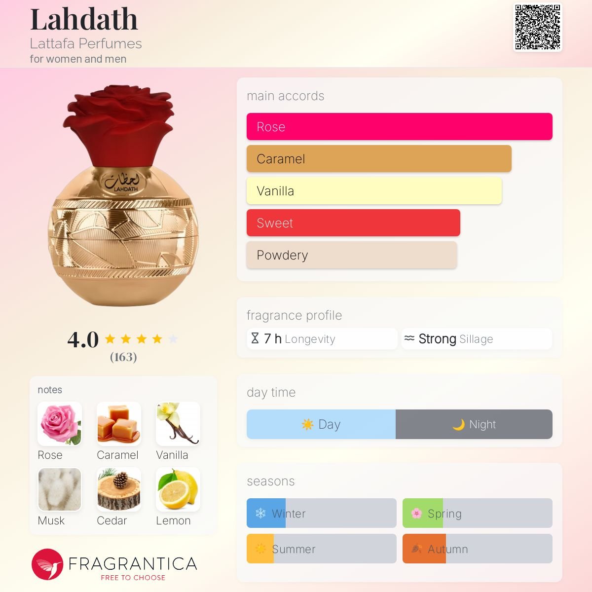 - Lahdath by Lattafa Perfumes is a Floral Woody Musk fragrance for women and men.