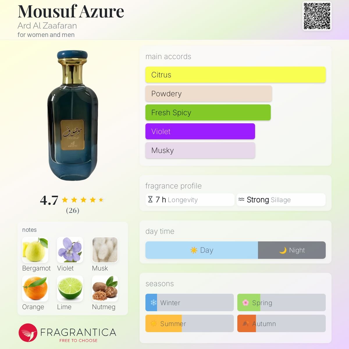 • Mousuf Azure by Ard Al Zaafaran is a Oriental fragrance for women and men.