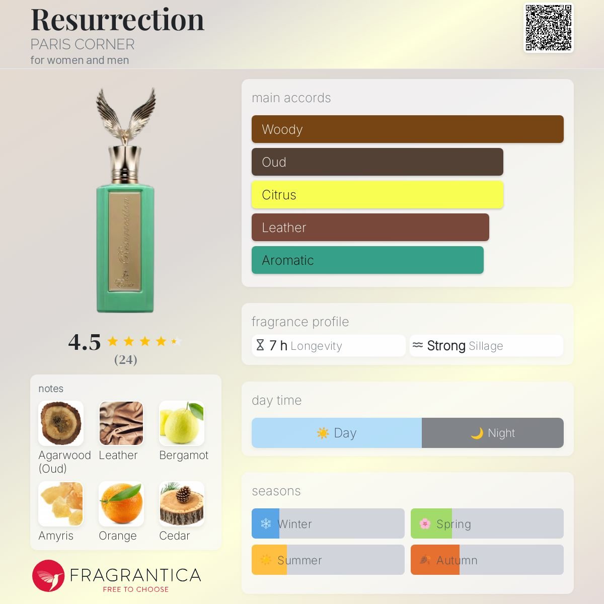 • Resurrection by PARIS CORNER is a Leather fragrance for women and men.