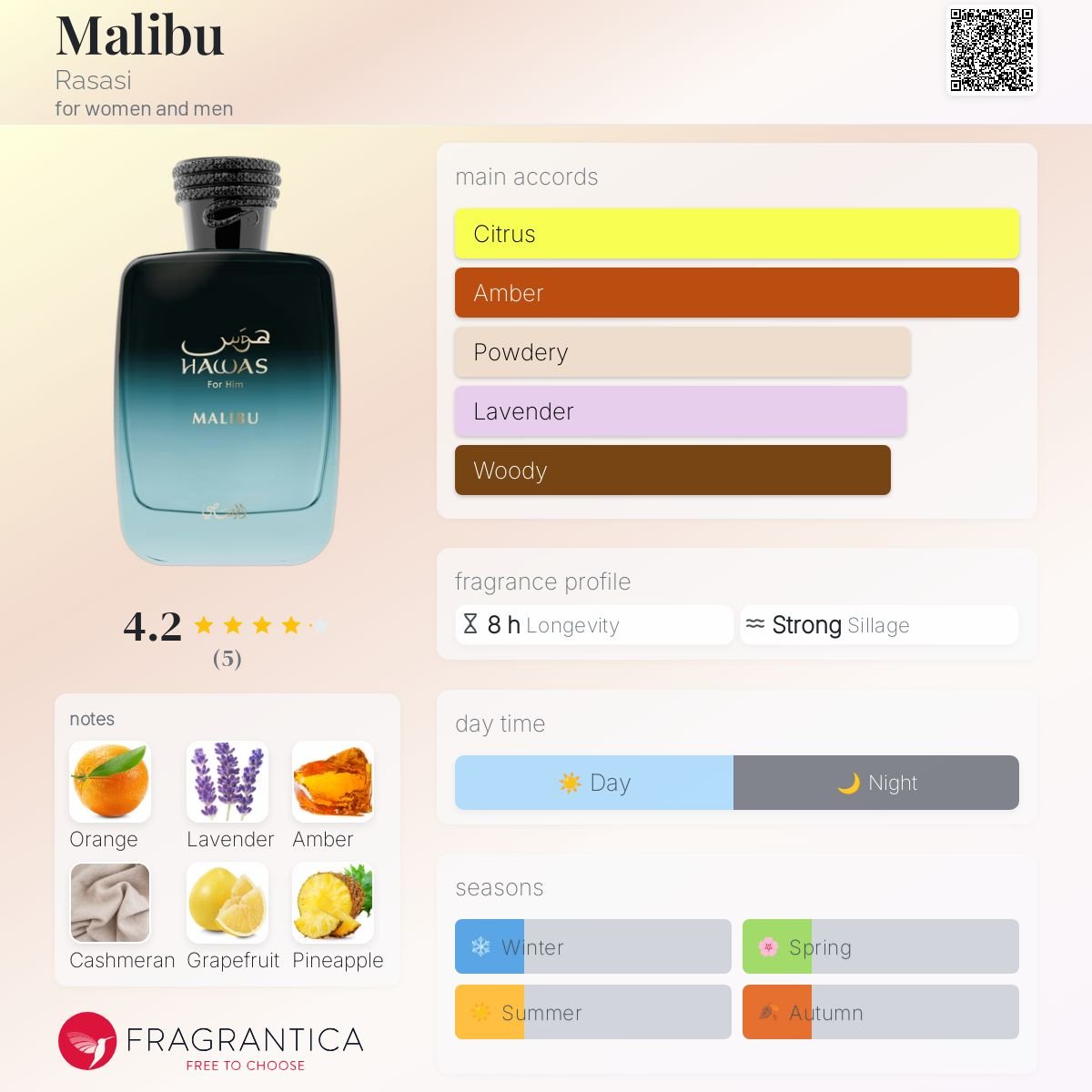 • Malibu by Rasasi is a Aromatic fragrance for women and men.