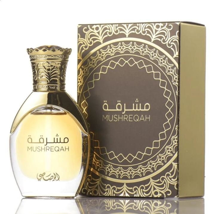- Rasasi Mushreqah 15ML by Rasasi Perfumes; Oriental dreaming begins with a slightly bitter trace of citrus bergamot, in a fragrant harmony with white-blooming jasmine, to which its spreading crowns bend softly smoothed cedar.
