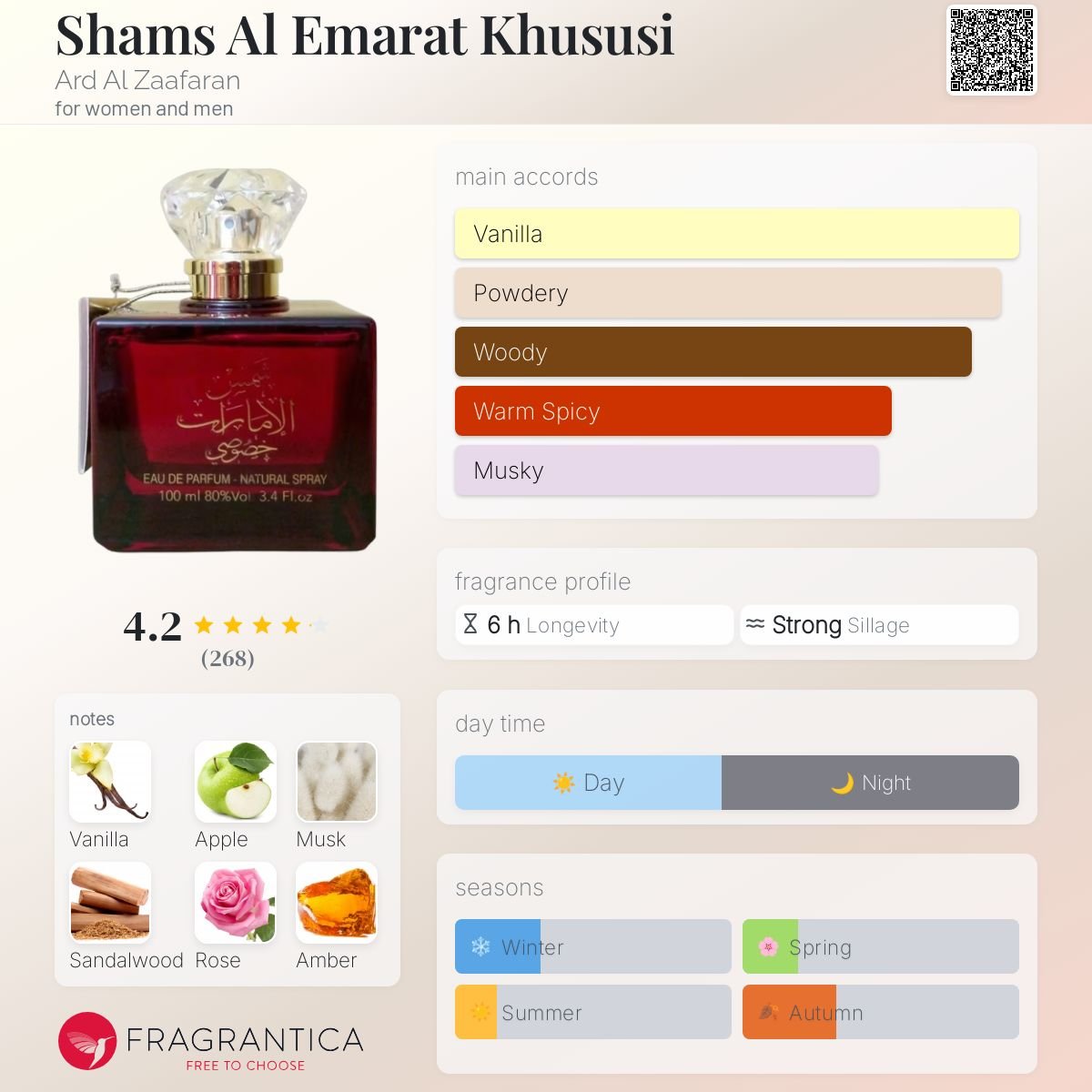 • Shams Al Emarat Khususi by Ard Al Zaafaran is a Oriental Vanilla fragrance for women and men.