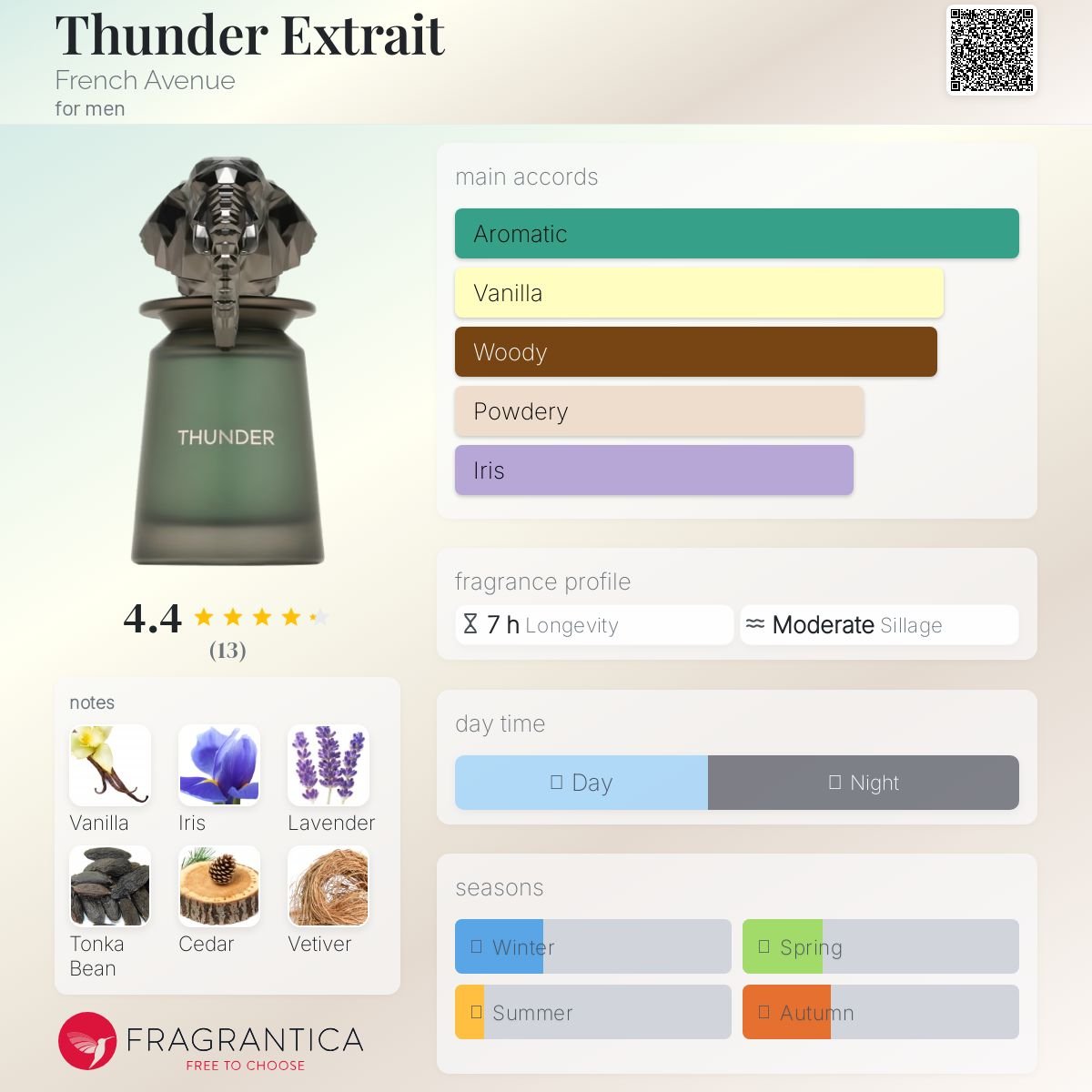 - Thunder Extrait by French Avenue is a Woody Aromatic fragrance for men.
