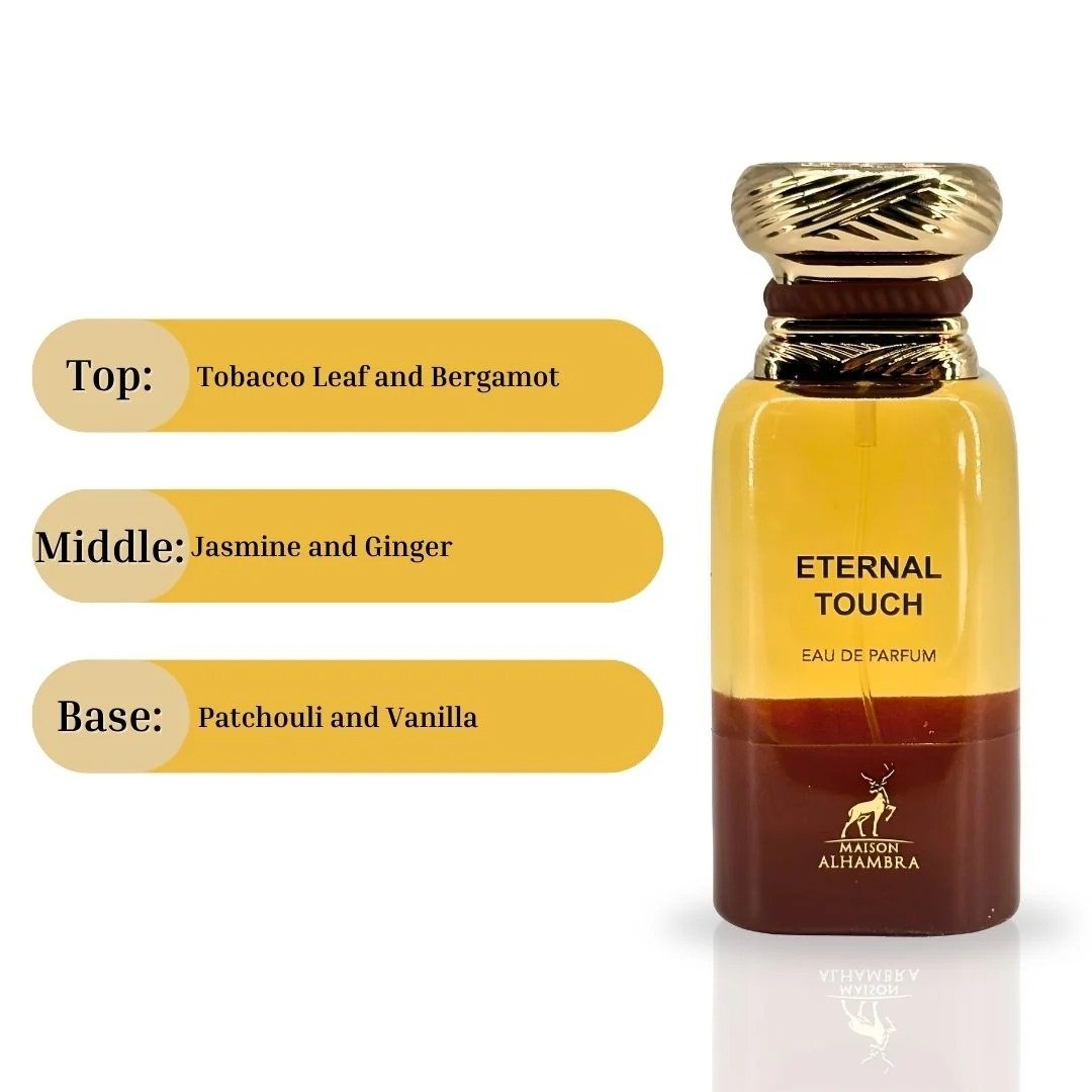- The new name for Maison Alhambra’s Eternal Touch is Tobacco Touch. The brand simply changed the name from Tobacco Touch to Eternal Touch for repackaging purposes, but the scent and formula remain the same.