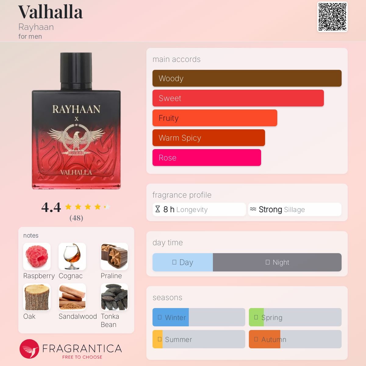 - Valhalla by Rayhaan is a Aromatic Fruity fragrance for men.